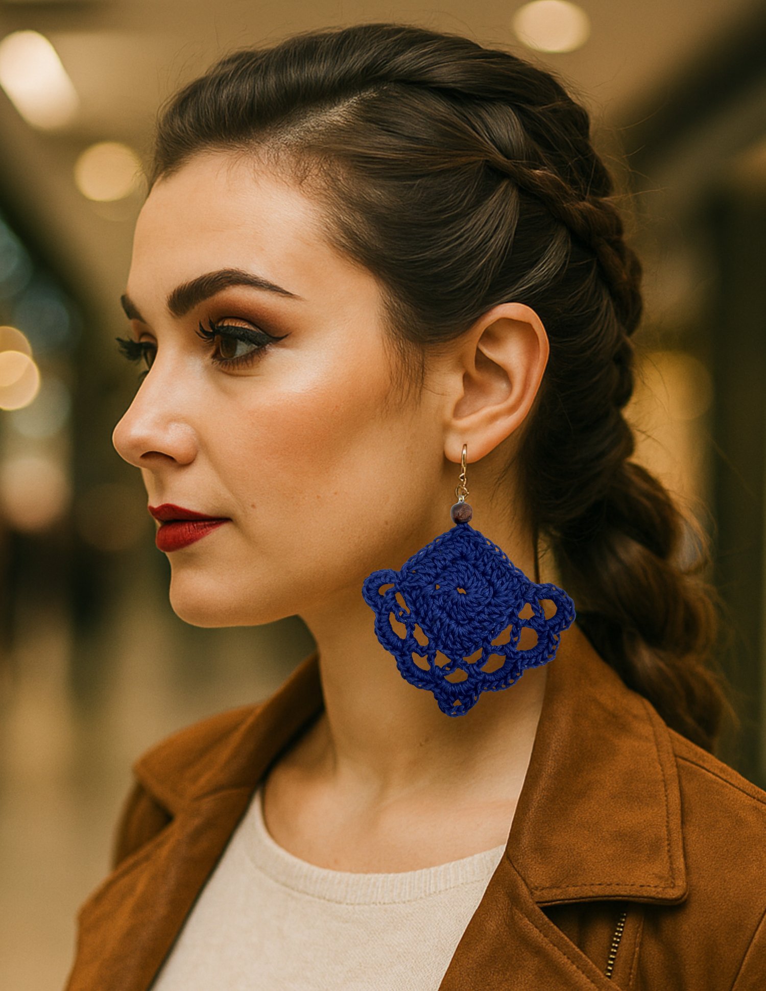 Made with medium-weight cotton and a 3–3.5 mm hook, these earrings are lightweight, customizable, and perfect for creative makers who love blending traditional crochet with bold wearable art.