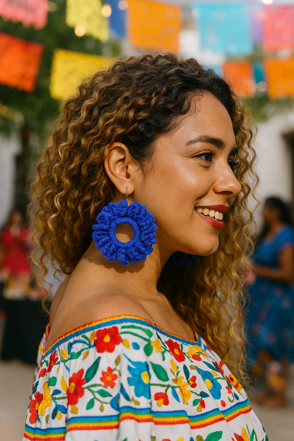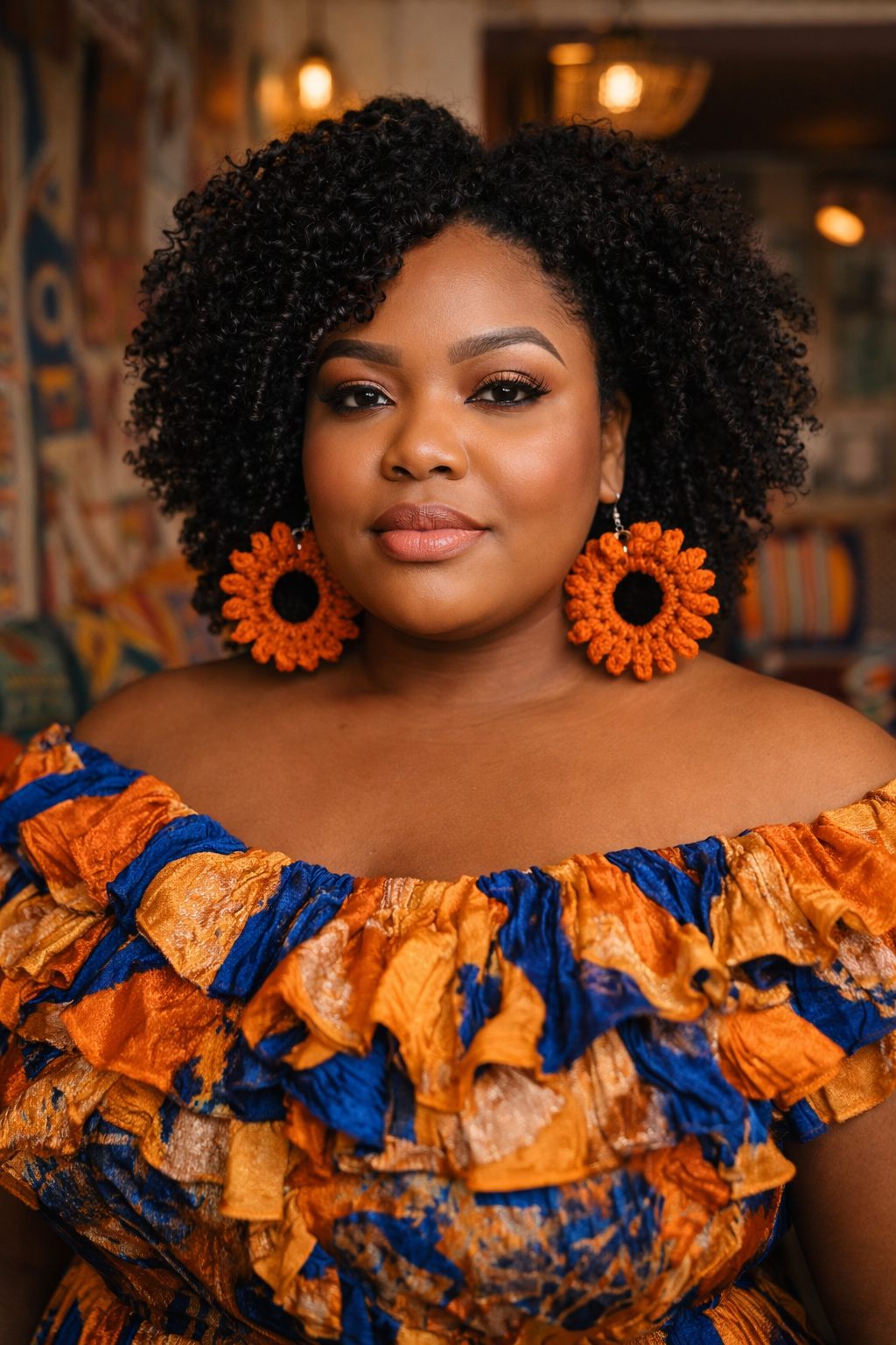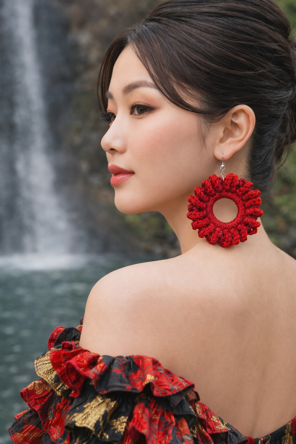 Because each loop is built by pulling up multiple stitches along a chain and closing them all at once, they stack neatly, forming a coiled effect that wraps the entire circumference. This gives the earrings a modern, architectural silhouette—almost like a miniature wreath or twisted rope—while still feeling lightweight and effortless to wear. The rings stay structured thanks to the foundation row of single crochets, giving the loops a stable base to bloom from.