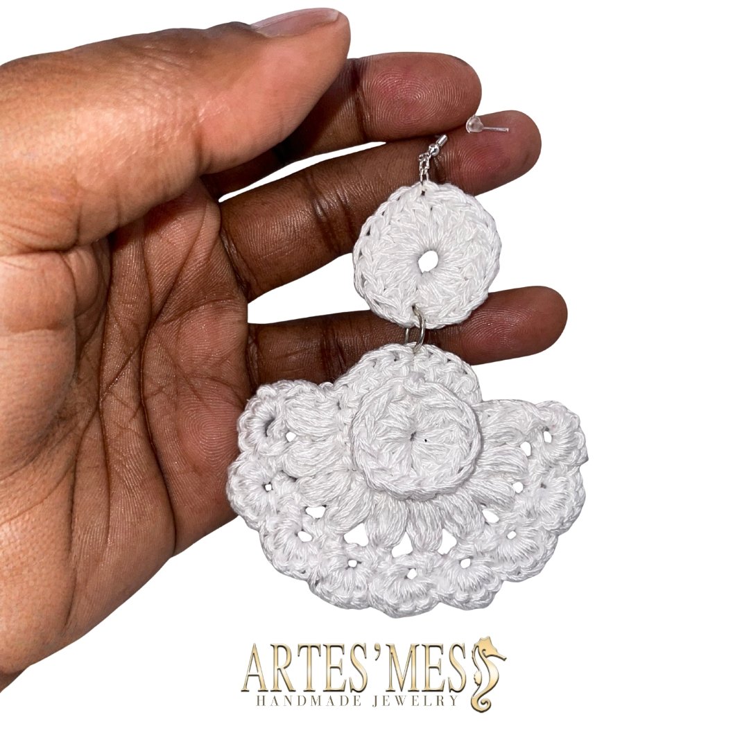 Inspired by my 3rd great-grandmother, Arrit (to be free), a proud Beaver Creek Native American woman, these handmade crochet earrings carry her strength and spirit through every stitch. The Aeroh earrings feature an original Artes’Mess design — a beautifully multi-layered fan dropping gracefully from a crochet circle, creating a bold yet soft statement piece.